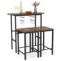 RAUL 3 Piece Counter Height Table Set Oval Dining Table and 2 Stools-Rustic Brown