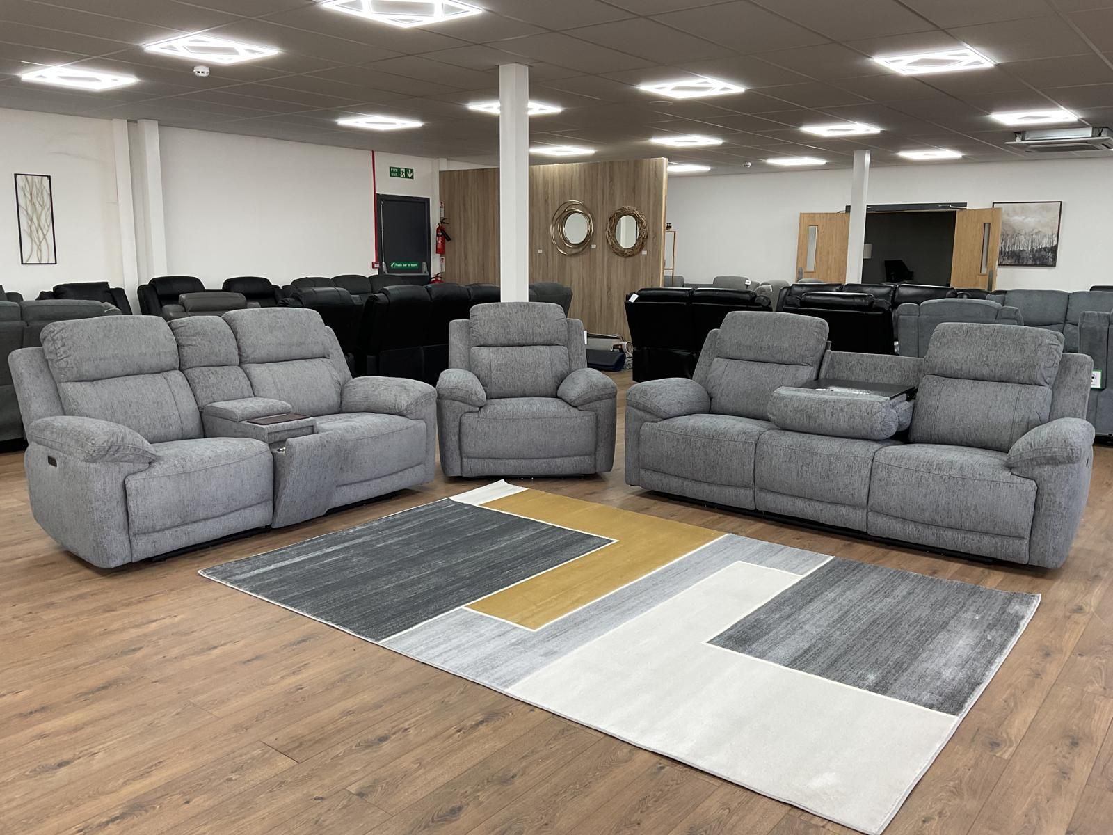 RAVELLE Fabric 3 Seater Electric Recliner Sofa - Grey