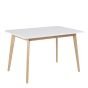 This dining table is a modern centerpiece for your dining area. Its top is crafted from white MDF, while the base is made of lacquered birch. This table offers both style and durability for your gatherings.