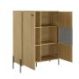 Elevate your living space with the Raven Winx Display Cabinet in Scandi Oak – a perfect blend of Scandinavian charm and modern functionality. Two hinged doors open to reveal four shelves, providing ample space for showcasing your cherished items. The sleek design is enhanced with black metal handles and legs, while ABS edging ensures durability. Crafted from high-quality 16mm laminated board, this cabinet is not only stylish but also a sturdy addition to your home decor. Assembly is required, allowing you to personalize your space with this chic display cabinet.