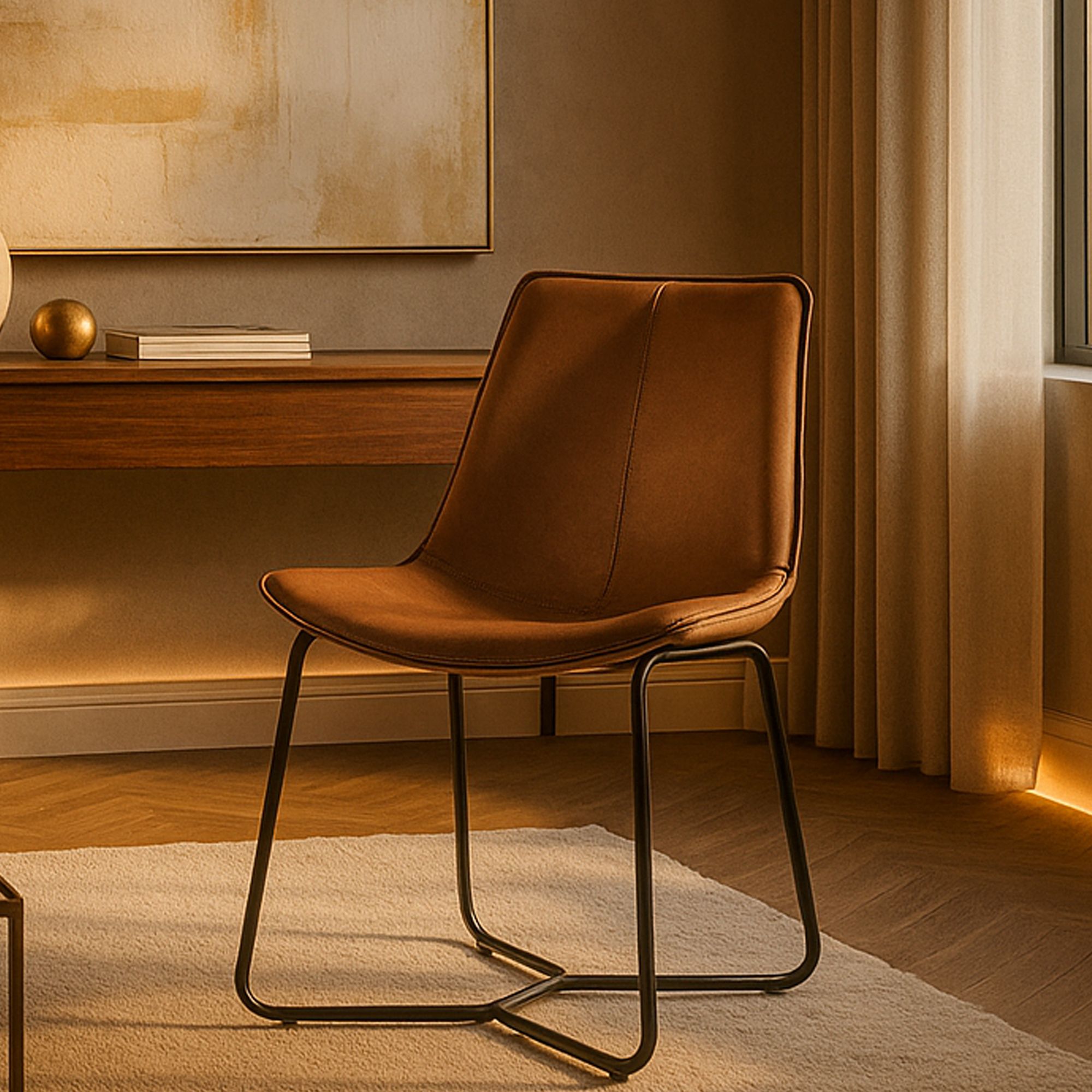 The RAVENSBOURNE PU Leather Dining Chair Brown - Set of 2 combines modern craftsmanship with a touch of traditional charm. Built to last and styled for versatility, it enhances any space effortlessly.