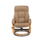 Luxurious recliner chair with a matching footstool upholstered in pleasant to the touch beige faux leather. With its sweeping form and decorative stitching, it is a perfect chair for a living room as well as a home office. Designed with the 5 point massage available in 5 modes and 2 intensities as well as the heating function, it guarantees comfortable sitting and supports good body posture. All functions are easy to operate with the included remote.