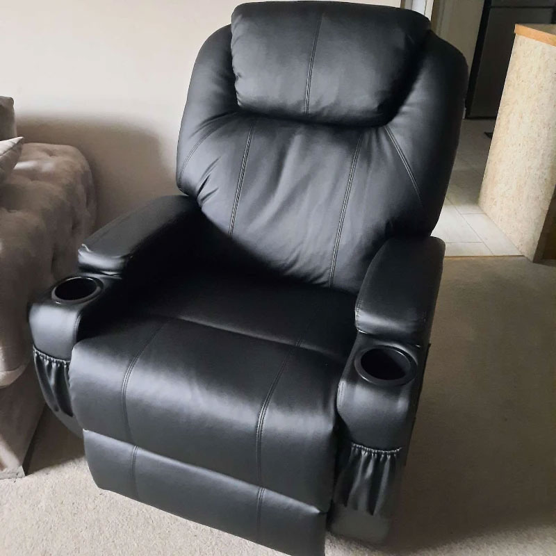 Sink into supreme comfort - with sleek style to match: get this recliner chair from. Its overstuffed upholstery is 22 cm thick, which features a high back and armrests to support your body too. Eight massage points, controlled by the remote, are fitted on the back, lumbar, thighs and calves to soothe your body all over. Finished with sleek PU leather upholstery. Release the stress of a long day, anytime, with this impressive and bold chair.