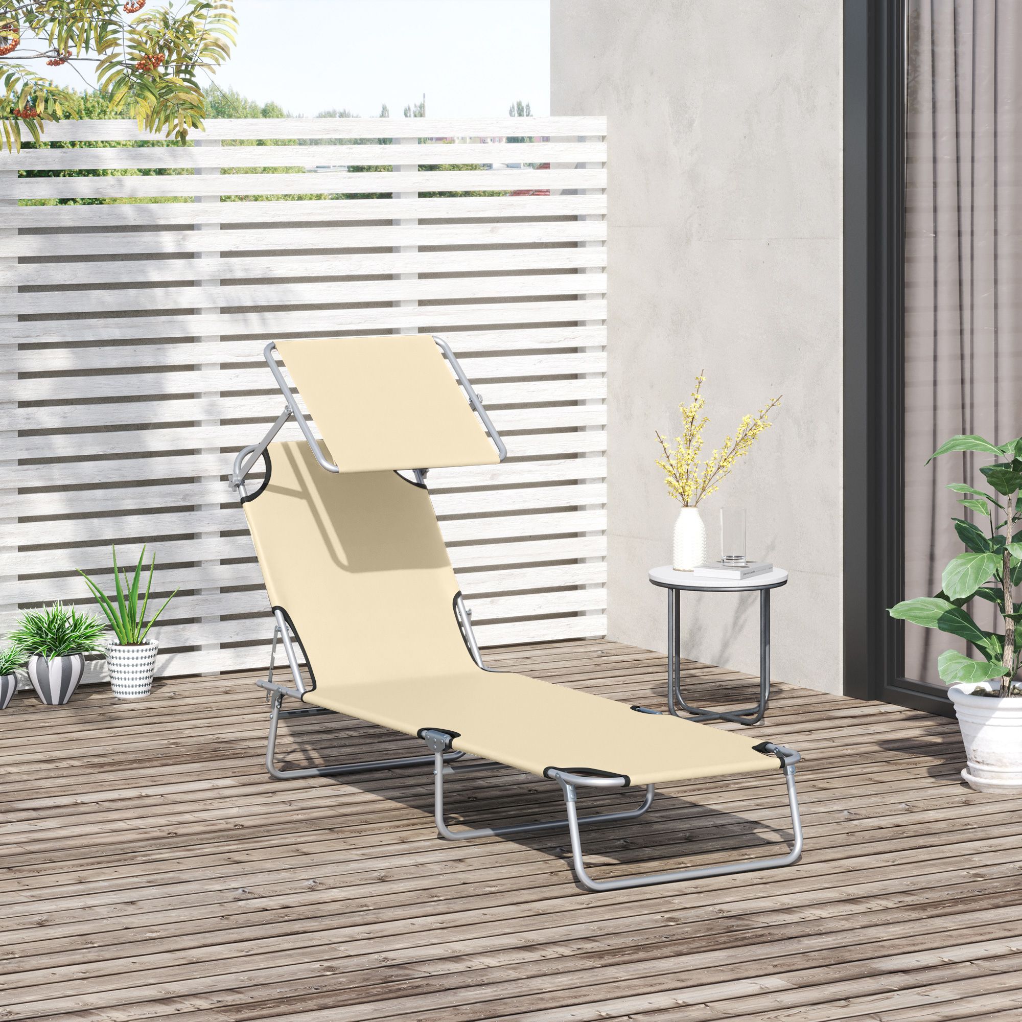 Reclining Chair Sun Lounger Folding Lounger Seat with Sun Shade Awning Beach Garden Outdoor Patio Recliner Adjustable (Beige)