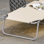 This reclining sun lounger from not only keeps you comfortable, but keeps your head safely protected. It's fitted with a moving and removable canopy to shield against the sun and light rain - reducing the risk of heatstroke and getting wet. The back is adjustable to four different levels, to lie back to an angle you like. And when done, simply fold the metal frame and store away.