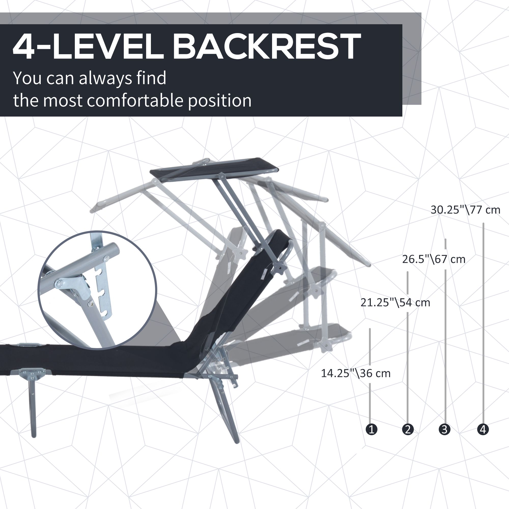 Reclining Chair Sun Lounger Folding Lounger Seat with Sun Shade Awning Beach Garden Outdoor Patio Recliner Adjustable (Black)