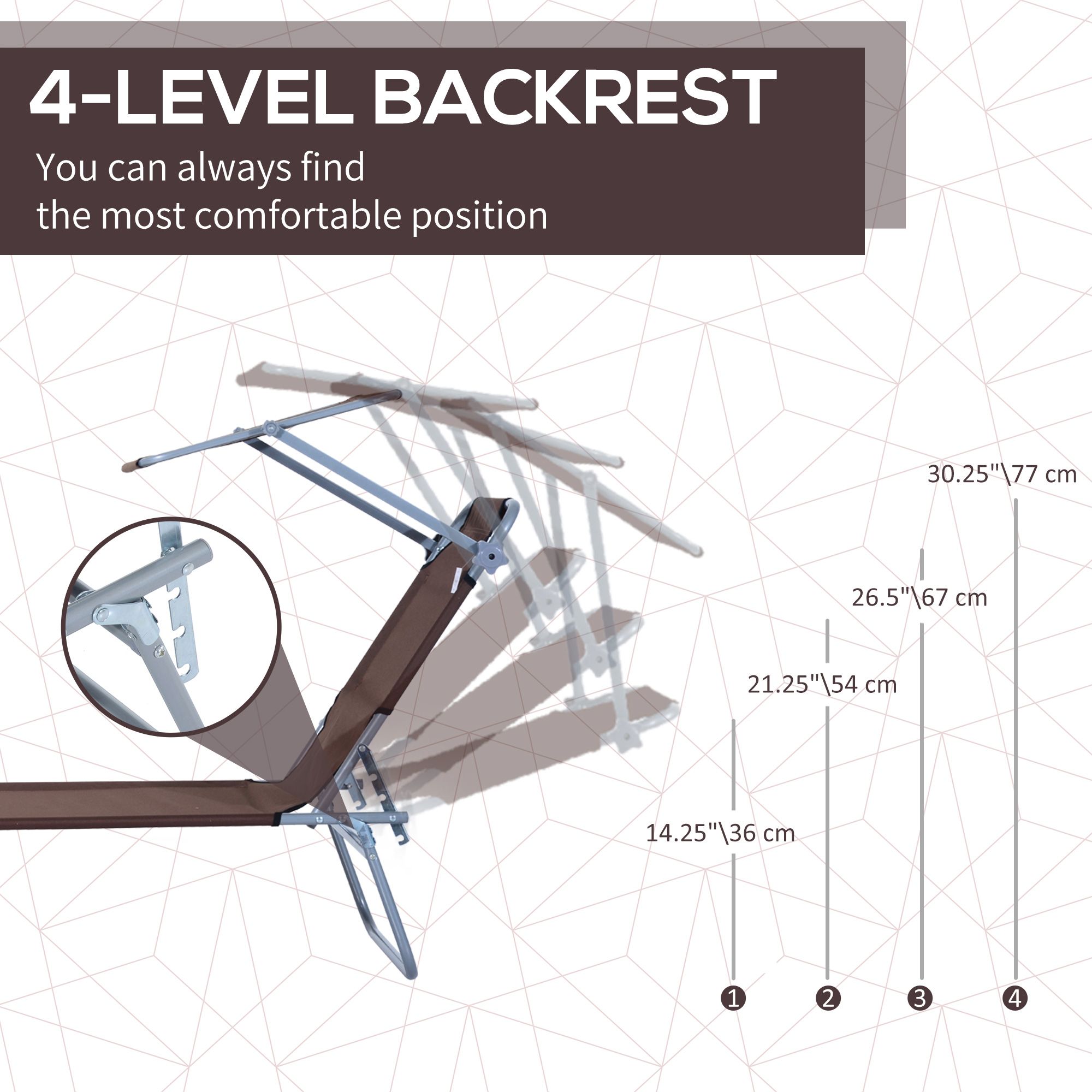 - FOLDABLE DESIGN: With the tri-fold design, the garden recliner is space saving when you store it in the corner or put it in the trunk in travel.