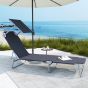 Reclining Chair Sun Lounger Folding Lounger Seat with Sun Shade Awning Beach Garden Outdoor Patio Recliner Adjustable (Grey)
