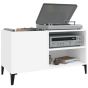 Store and show off your vinyl records with this practical and classic record cabinet. Durable material: The engineered wood is of exceptional quality with a smooth surface and features strength, stability and resistance to moisture.Ample storage space: The spacious record player cabinet offers ample storage space for LP records and keeps your music collection well-organised.Sturdy top: The sturdy top of the vinyl storage cabinet is ideal for placing your record player or other electronics.Multiple functions: This record storage cabinet can also be used as a side cabinet in the living room or a filing cabinet in the office and study.Metal legs: The metal feet add an industrial style to your interior while ensuring stability.
