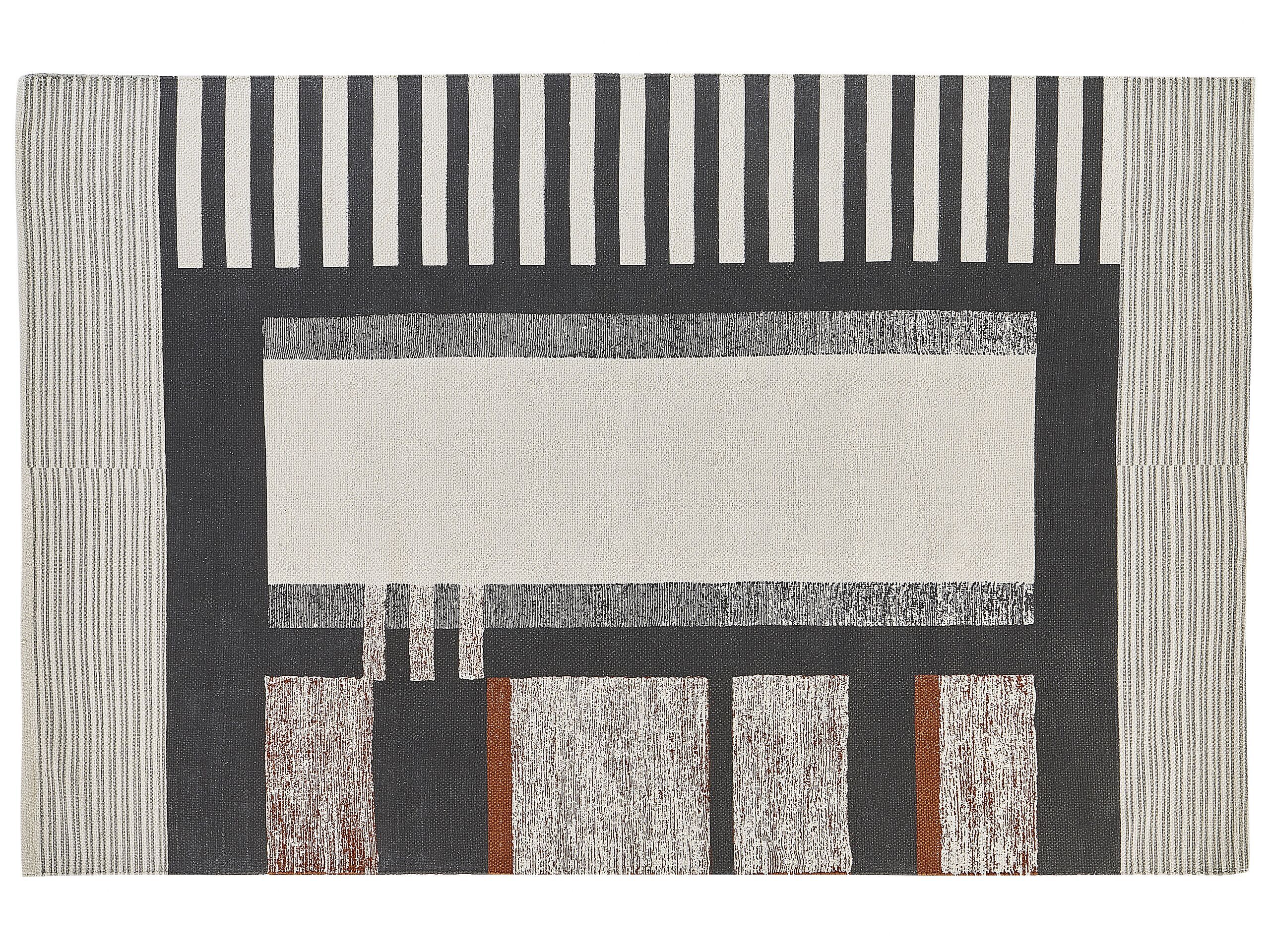 A soft area rug fills the room and makes it more pleasant. This one's a perfect pick for modern and Scandinavian living rooms and bedrooms. Handwoven from all-natural cotton, it has a warm feel to it, at the same time being resistant to heavy use. The pattern isn't going to wear-down thanks to being printed, which increases its longevity. Details: Color: Multicolour, Black, Beige. Main material: Cotton. Material Composition: 100% Cotton Weight: 8 Assembly: Does Not Require Assembly