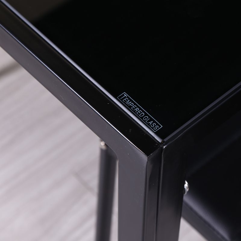 Indulge in the allure of sophistication with our Glass Dining Table. Effortlessly enhancing your kitchen or dining area, its sleek black hue exudes modern elegance. Crafted with high-quality metal legs, stability and safety are assured, elevating your dining experience.