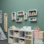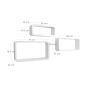 Material: MDF Shipping List: - 3 x Floating Wall Cubes (1 large rectangle, 1 medium rectangle and 1 small rectangle) - 1 x Accessories bag (including screws, plastic expansion bolts) - 1 x Carton package Note: - A screwdriver, a level and a ham