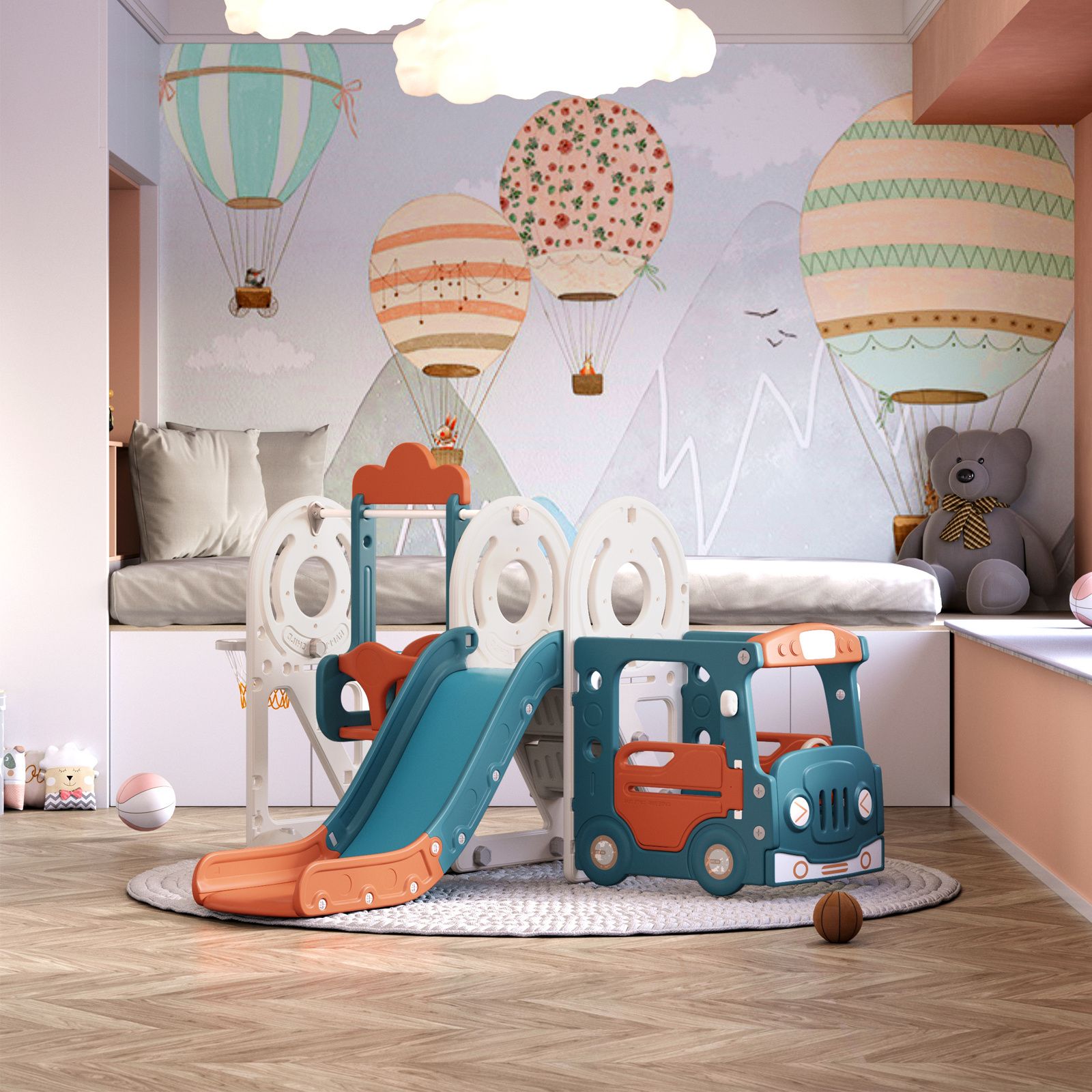 Red 3-in-1 Kids Toddler Swing and Slide Set Climber Playset