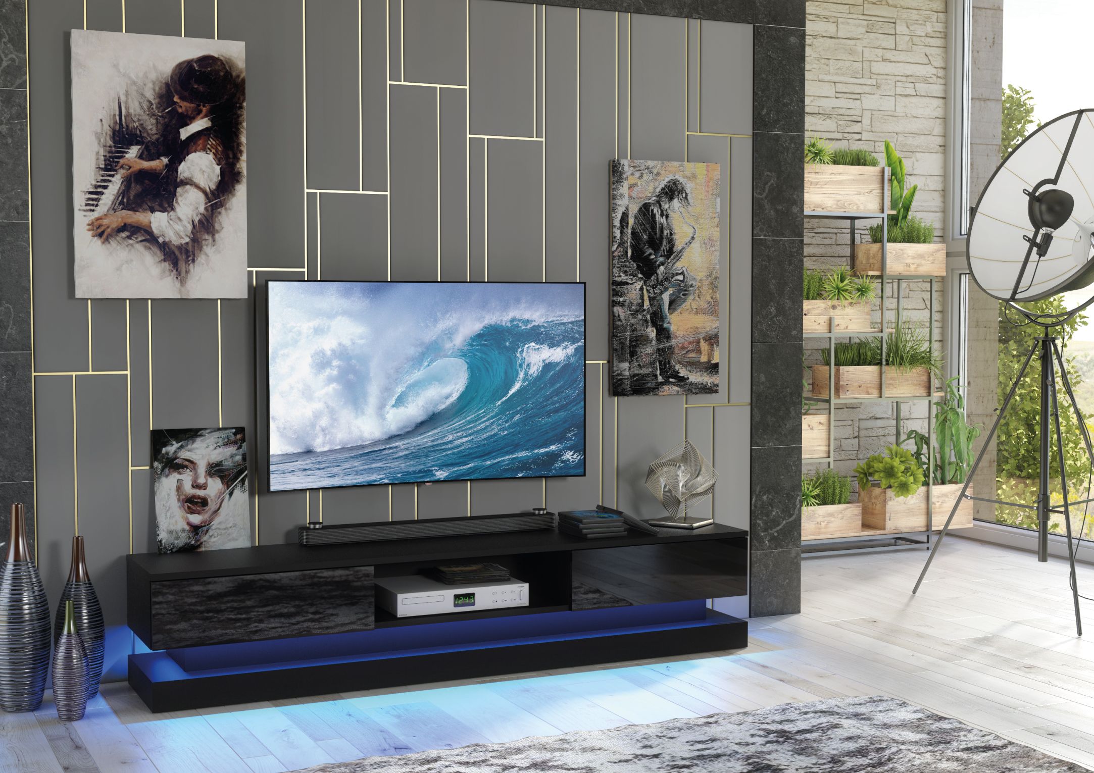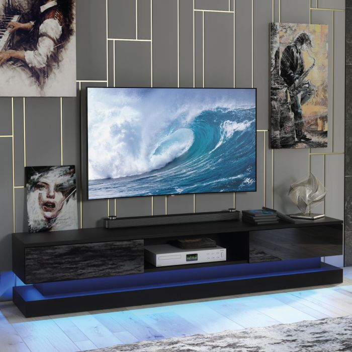 The REGAL TV Unit brings modern sophistication to your living room, serving as a sleek and functional centerpiece for your entertainment area. Measuring 180cm (W) x 36cm (H) x 35cm (D), it provides a spacious surface for your television while enhancing your interior with a streamlined and contemporary aesthetic. The matte-finished body beautifully contrasts with high-gloss doors, creating a polished and stylish look. Dual push-to-open doors offer easy access to hidden storage compartments, making it simple to keep your living area tidy and organized. At the center, an open compartment provides versatile space for media devices, gaming consoles, or decorative items, ensuring everything is neatly arranged and within reach. Available in White & Gloss Doors, White & Grey Gloss Doors, Black & Gloss Doors, and Dark Grey & Gloss Doors, the REGAL TV Unit is a versatile and sophisticated choice for contemporary living spaces.