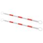 These 2 traffic cone bars are designed to be used with any traffic cone to create a more noticeable barrier. It is suitable for parking lots, hazardous areas, pedestrian crossings and construction areas. The bars are made of plastic, which makes them lightweight and easy to move around. One side of the traffic cone bar can be extended for a total length of between 116 cm and 197 cm. Designed with ring on each side, the bar can be easily yet securely placed on a pair of traffic cones to form a unique barrier system. Reflective red stripes also help to make them more visible to drivers, especially in the evening. Delivery includes 2 traffic cone bars.