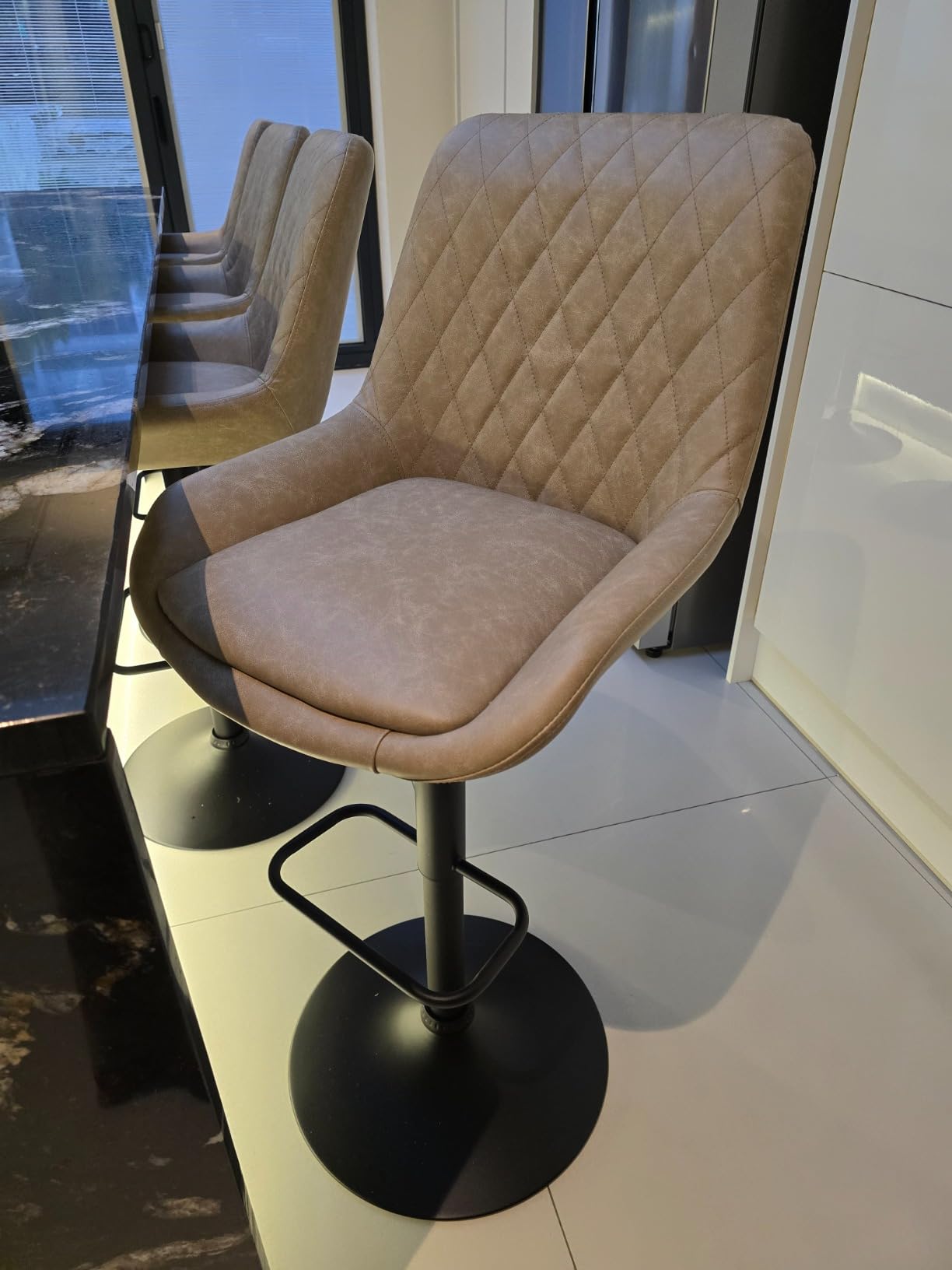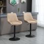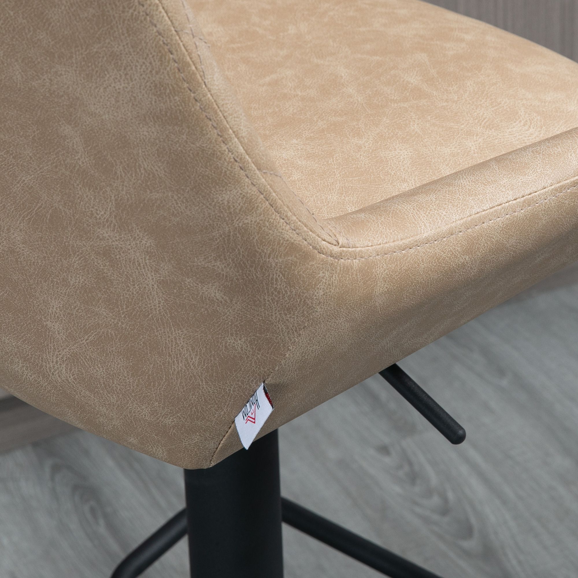 Retro Bar Stools Set of 2, Adjustable Kitchen Stool, Upholstered Bar Chairs with Back, Swivel Seat, Light Khaki