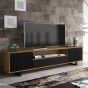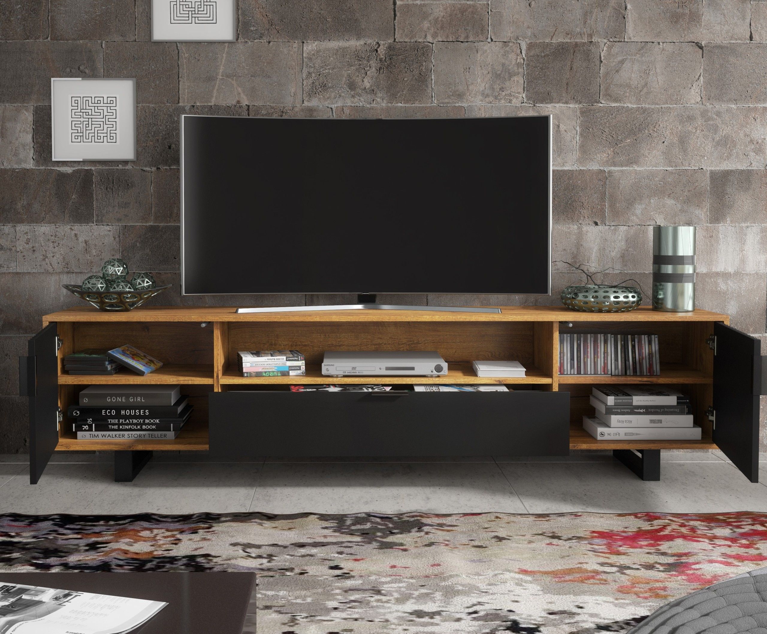 Retro Loft TV Unit with Milled Fronts and Oak Black Vintage Cabinet Cupboard Stand 200cm - Oak and Black