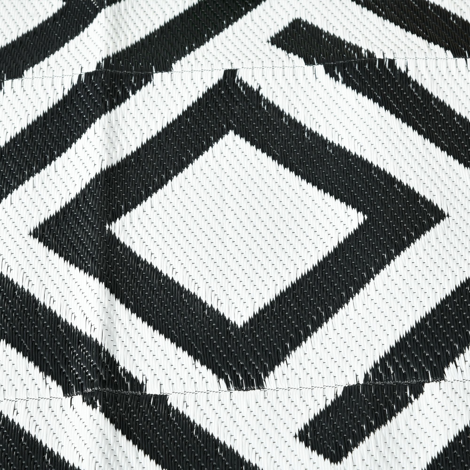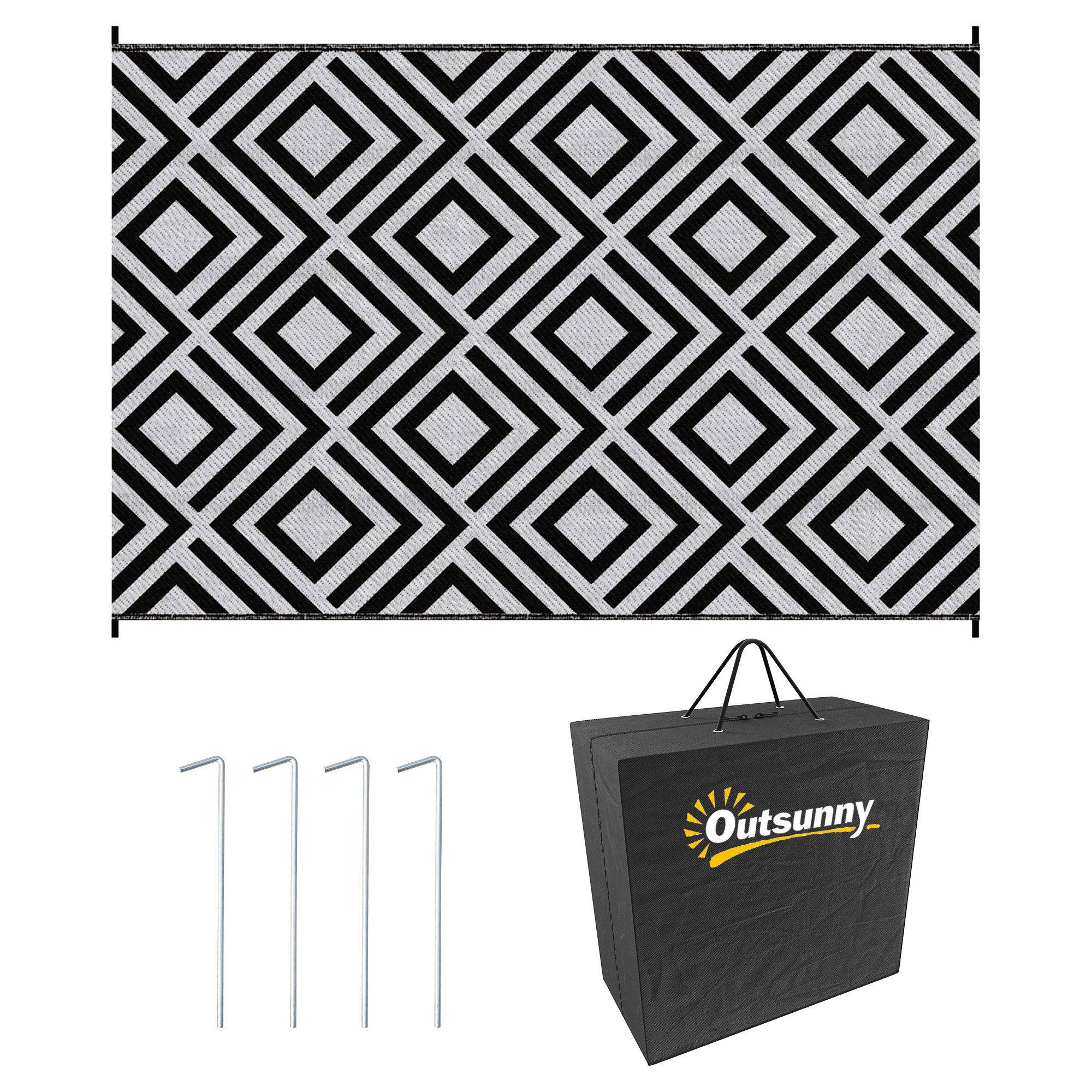 The Outsunny waterproof outdoor rug is great for using where you want outdoors. Whether it's for camping, picnics, festivals or your own garden, simply fold it and go. Durable and water-resistant material makes it suitable for outdoor use. Plus, the plastic outdoor rug is reversible, so you can double the use when one side gets dirty. Comes with carry bag to keep safe when travelling.