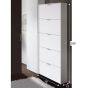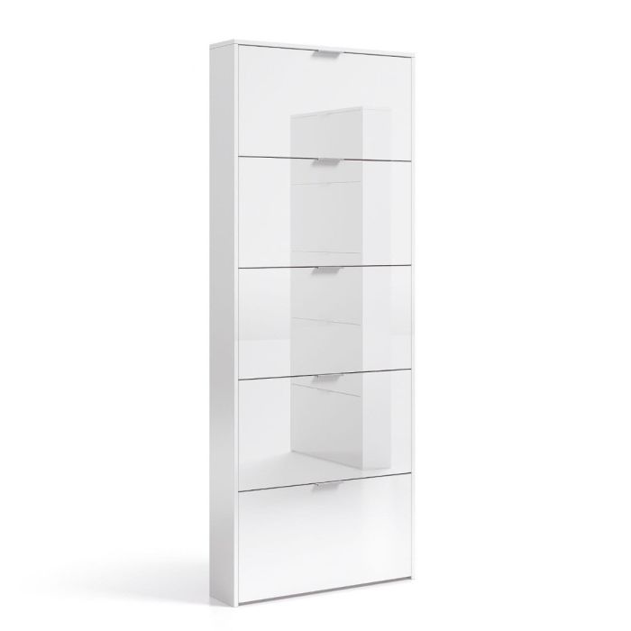 Maximize your shoe storage with the White Gloss Revolving Shoe Cabinet. Featuring five rotating drawers, this cabinet offers space-efficient organization for 18 to 22 pairs of shoes, making it ideal for any home. The sleek white gloss finish adds a contemporary flair to your space, while the revolving drawers provide easy access to your footwear collection. Delivered flat packed for convenience, assembly is quick and straightforward, allowing you to enjoy your organized shoe storage solution in no time.