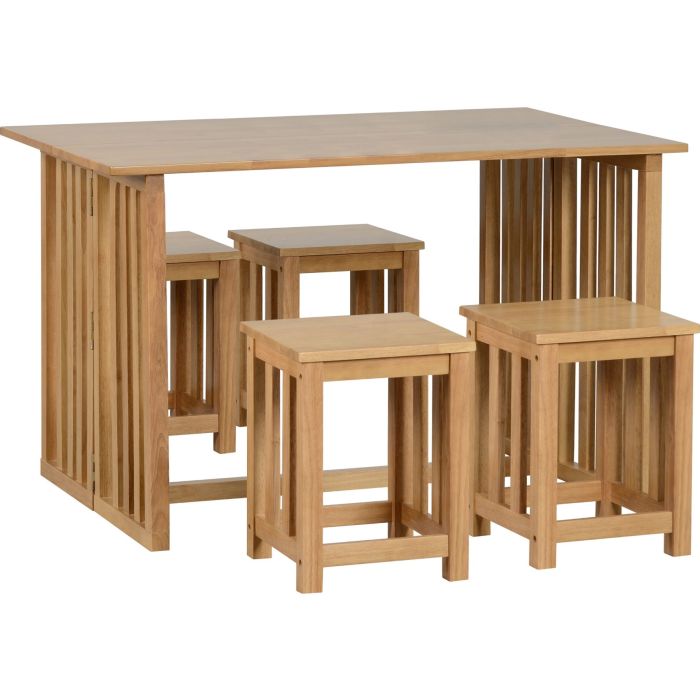 Richmond Foldaway Dining Set (4 Stools) - Oak Varnish