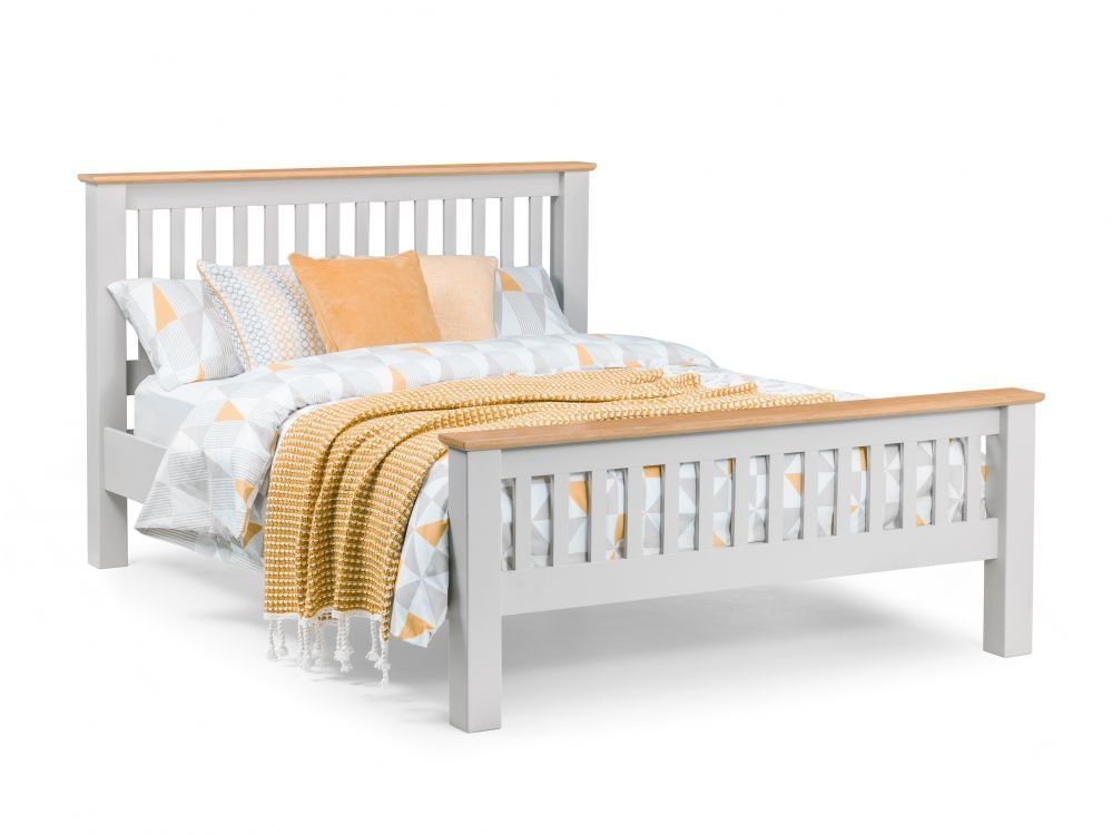 An imposing shaker style bed frame finished in a elephant grey lacquer, creating a timeless, elegant design suitable for a wide range of decor. Constructed from white oak and oak veneers, this lacquered bedroom range brings a modern twist on a traditional construction. Coordinating with the extensive Richmond bedroom range.