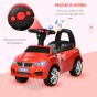 Ride on Sliding Car Baby Toddler Walker Foot to Floor Slider Stroller w/ Horn Music Working Lights Hidden Storage Big Steering Wheel Red
