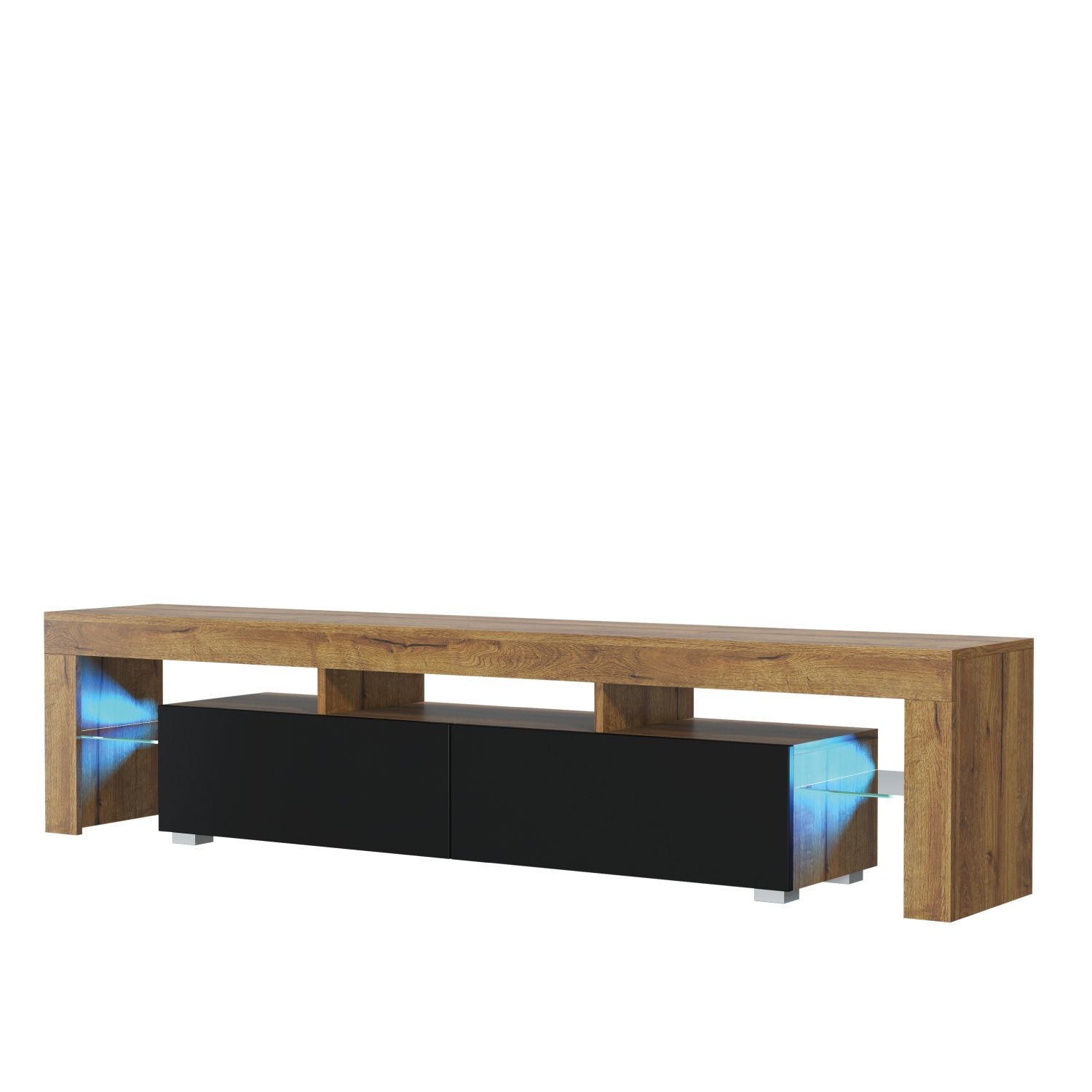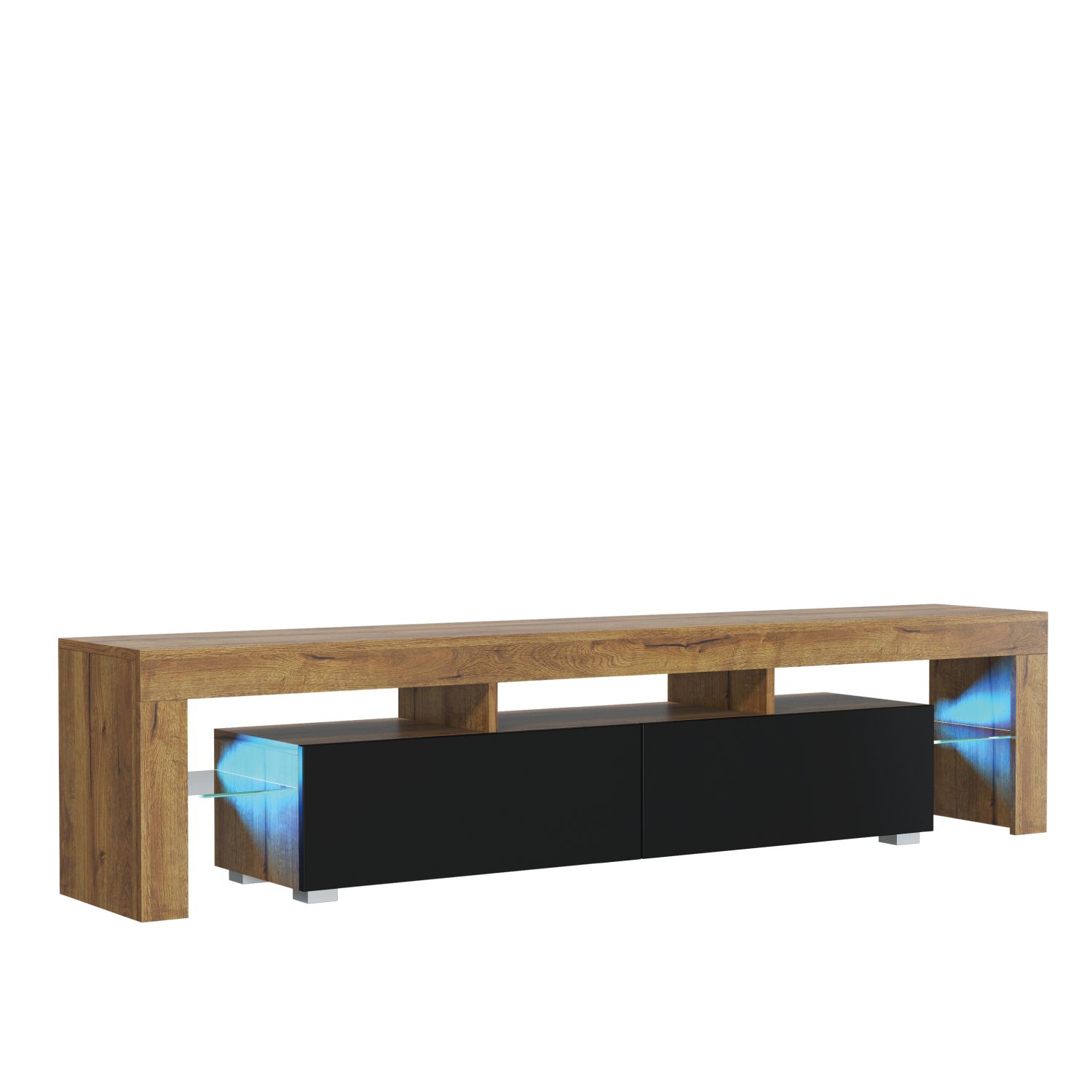 The RIDGE TV Unit transforms your living room into a spacious and elegant entertainment hub, serving as a stunning centerpiece for any contemporary interior. Measuring 200cm (W) x 45cm (H) x 35cm (D), this generously sized cabinet combines style and functionality, making it the perfect fit for larger spaces. The unit features a sleek matte body paired with high-gloss doors, creating a clean and modern aesthetic. Please note: the Dark Oak with Black version features matte black doors, providing a unique and understated alternative to the glossy finishes available in other combinations. Crafted from durable 16mm chipboard and MDF, the RIDGE TV Unit is built to last and thoughtfully includes easy cable access to ensure a clean and organized entertainment setup. Available in White & Gloss Doors, White & Grey Gloss Doors, Black & Gloss Doors, Walnut & Black Gloss Doors, Oak & White Gloss Doors, Dark Oak & Black Matt Doors, and Dark Grey & Gloss Doors, this versatile unit is designed to enhance any modern living space.