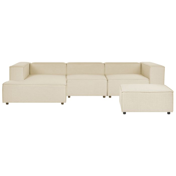 Right Hand 3 Seater Modular Linen Corner Sofa with Ottoman Beige APRICA