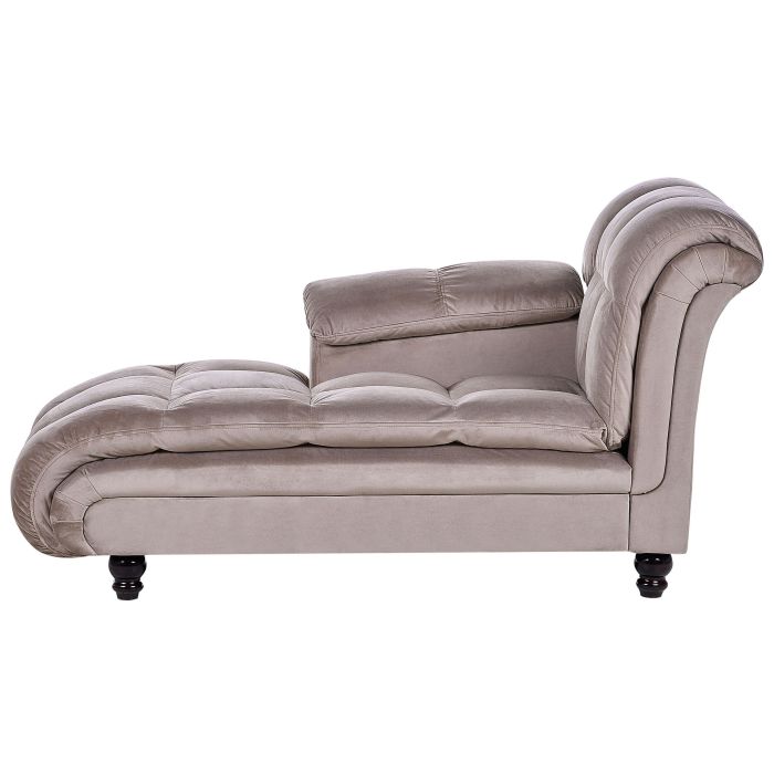 Comfortable and stylish, this chaise lounge blends perfectly with any modern, contemporary, or traditional interior design. Upholstered in soft-to-the-touch taupe fabric, it's generously filled with high-quality foam for the utmost seating comfort. Featuring beautiful biscuit padding and wooden legs, it is stylish and eye-catching. The chaise lounge works great as a living room centrepiece, perfect for napping and reading. Details: Color: Brown. Main material: Polyester. Additional material: Plywood, Pine Wood. Material Composition: 100% Polyester Weight: 30 Assembly: Full Assembly Required Wood type: Pinus radiata Wood Origin: China Weight Capacity: 300 Legs Height: 10 Padding Thickness: 26 Seat Height: 36