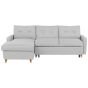 Create a cosy corner to rest after a long day at work, welcome family members or watch a favourite TV show with friends with this sectional sofa for three. Polyester upholstery in classy light grey is extremely durable while wooden Scandinavian-inspired legs not only provides support to the construction but also gives it a light-look. Thanks to the pull-out mechanism, you can turn the sofa into a bed for guests within a minute. Build-in storage space provides ample place to keep an additional pair of sheets and duvets. The chaise part is situated on the right from the perspective of the sitting person. Details: Color: Grey, Light Wood. Main material: Polyester. Additional material: Rubberwood, Eucalyptus Wood. Material Composition: 100% Polyester Weight: 95 Capacity: 4 People Assembly: Full Assembly Required Cushions Dimensions: 70x42x16 Legs Height: 10 Padding Thickness: 14 Seat Height: 53 Sleeping Surface: 140x210
