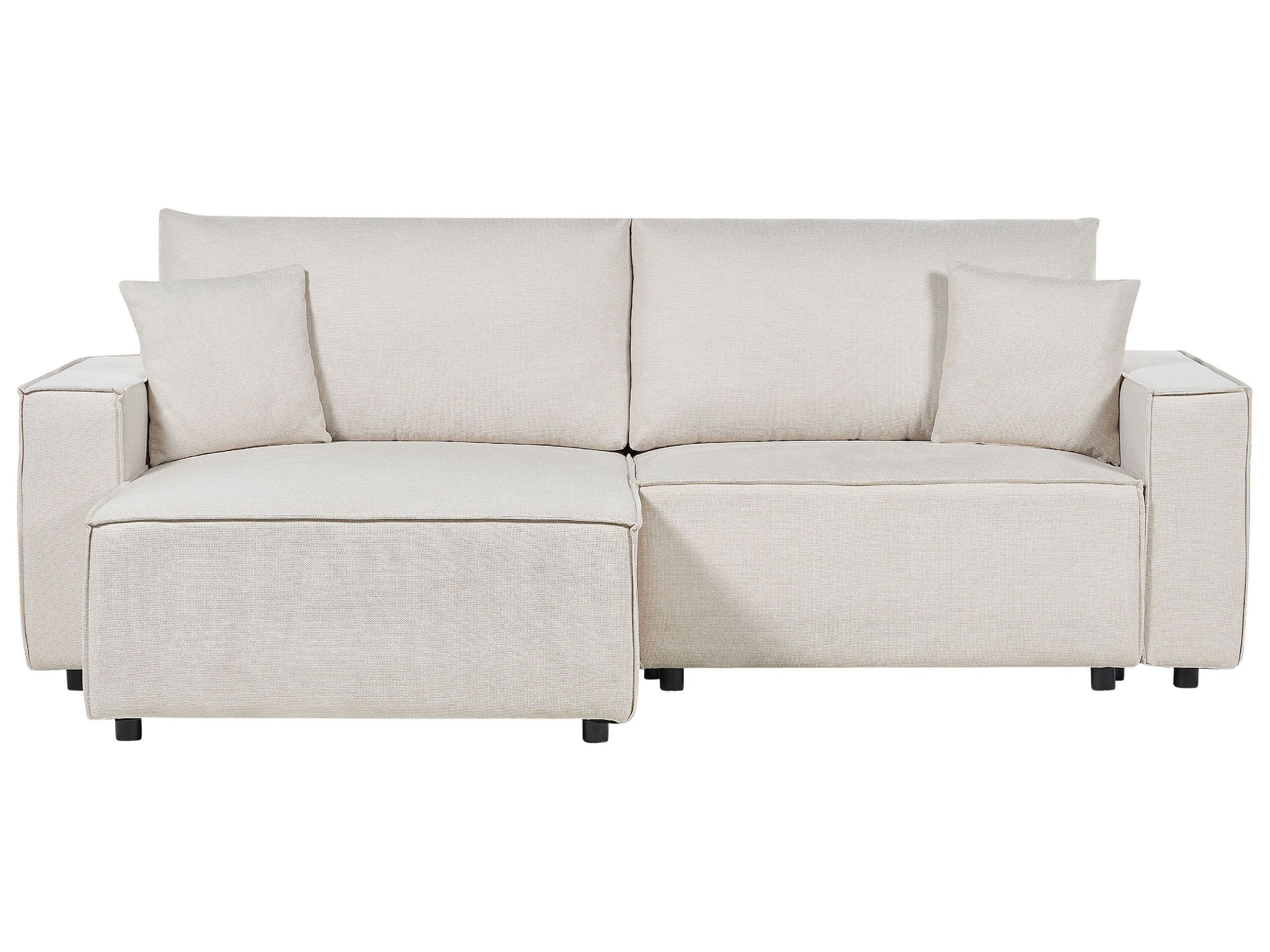 Right Hand Fabric Corner Sofa Bed with Storage Beige KARILA