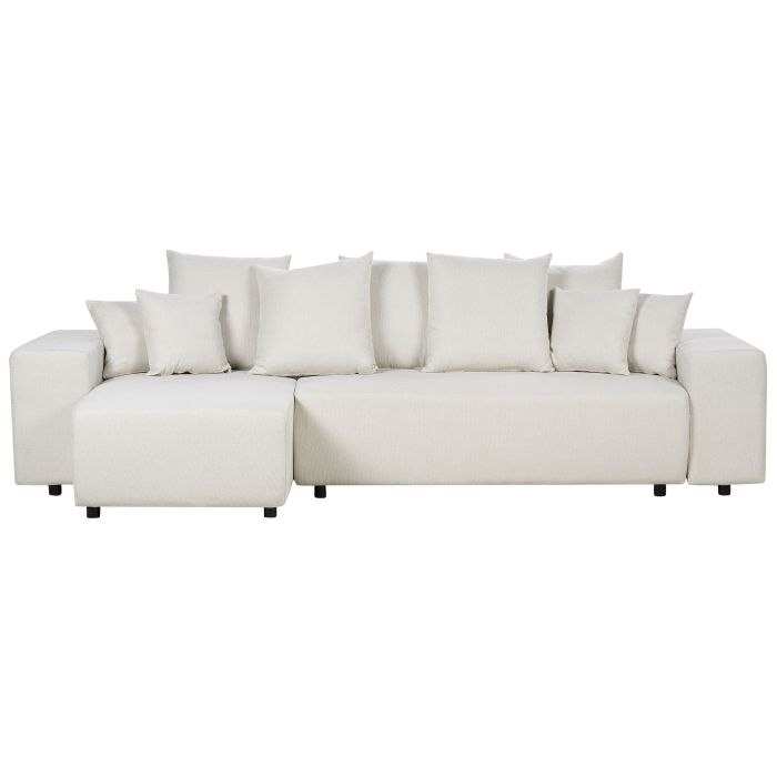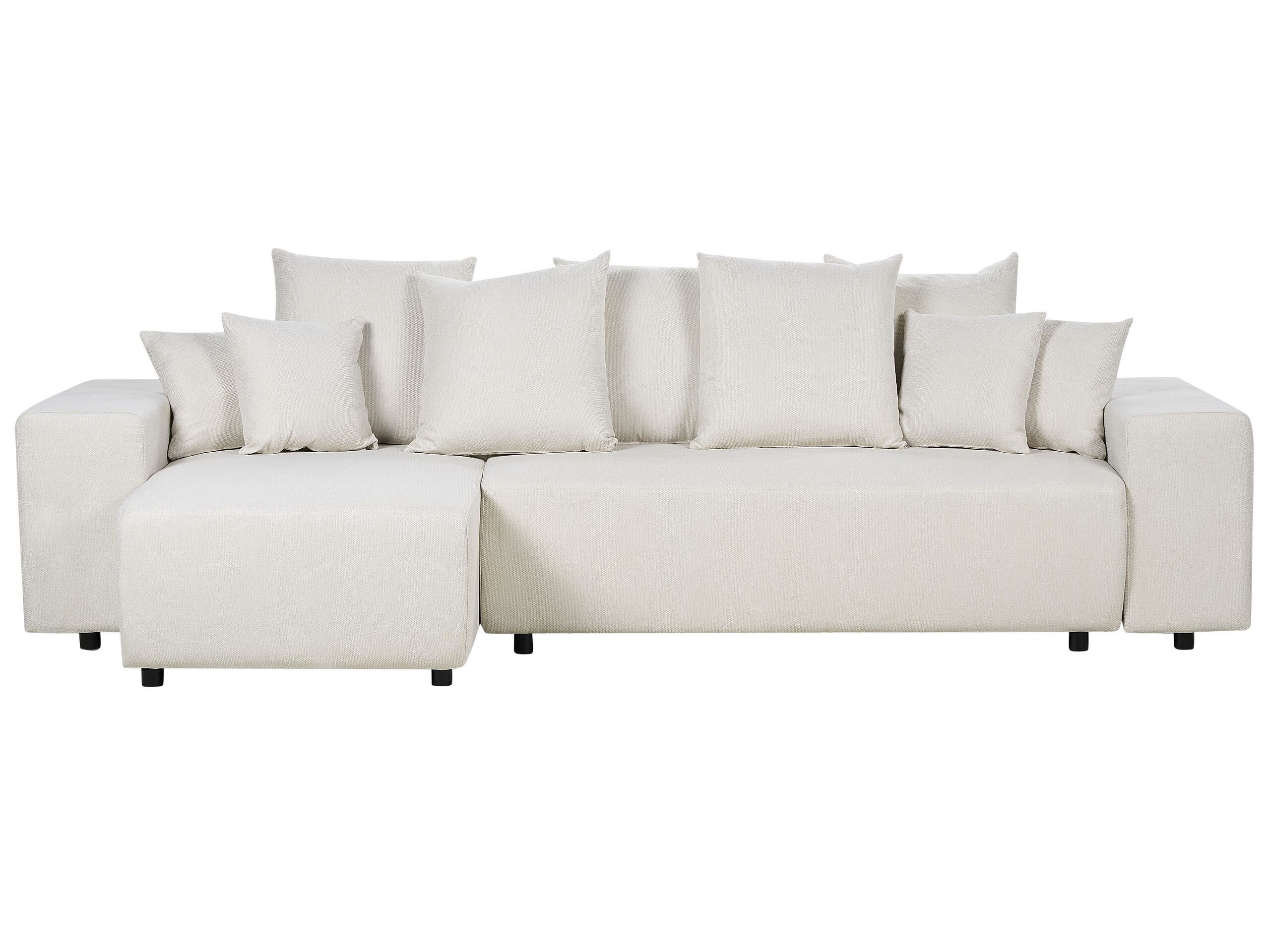 Right Hand Fabric Corner Sofa Bed with Storage Light Beige LUSPA