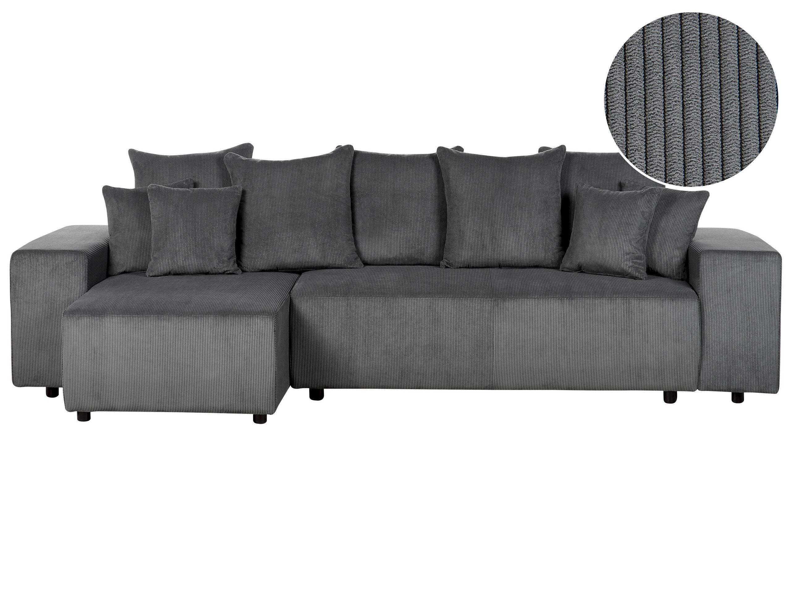 Right Hand Jumbo Cord Corner Sofa Bed with Storage Dark Grey LUSPA