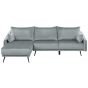 This three-seater sofa, made of chic velvet, will infuse a touch of elegance and sophistication to any living room. The thickly padded seats and back cushions provide extra comfort, while the solid eucalyptus wood frame and black, metal legs help ensure durability as well as stability. Thanks to its versatile L-shaped design, with the chaise on the right-hand side from the sitting perspective, this sofa is perfect for sitting, lounging and relaxing. Details: Color: Grey, Black. Main material: Velvet. Additional material: Metal, Eucalyptus Wood. Material Composition: 100% Polyester Weight: 73 Capacity: 3 People Assembly: Legs to be Fitted Wood type: Eucalyptus deglupta Wood Origin: China Cushions Dimensions: 80x48 Legs Height: 17 Padding Thickness: 22 Seat Height: 39