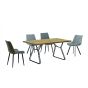 - Striking dining table featuring oak effect tabletop and black metal legs for a modern aesthetic.
