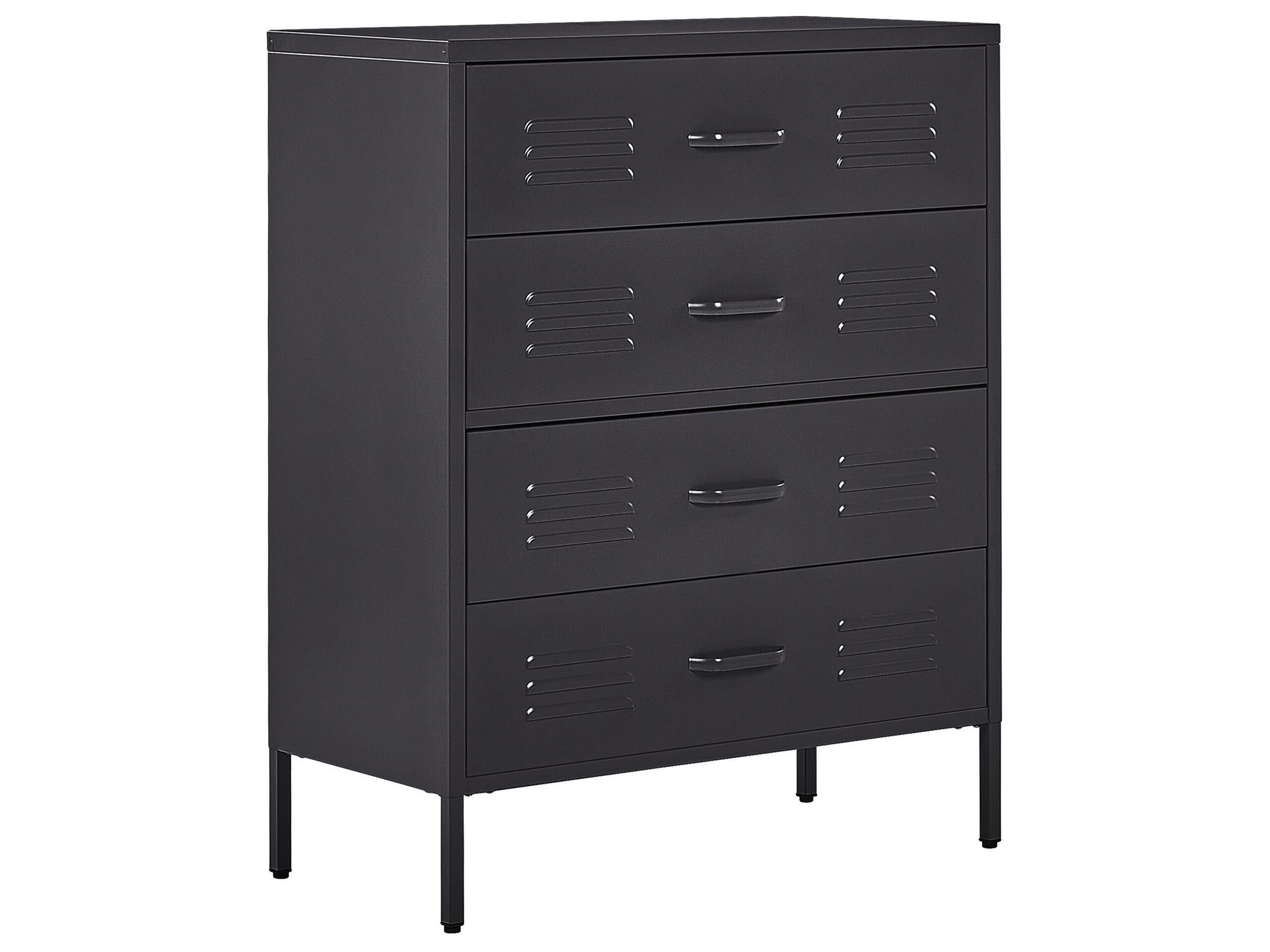 This functional chest designed in industrial style comes with four drawers. The body is made of sturdy metal, which makes it particularly durable. Thanks to high-quality powder coating finish, the surface is easy to care for and increases the furniture's resistance to corrosion. With its minimalist look, the chest will make a wonderful addition to a bedroom as well as home office. Details: Color: Black. Main material: Steel. Weight: 30 Assembly: Full Assembly Required Legs Height: 15