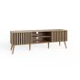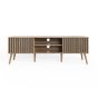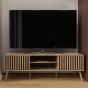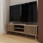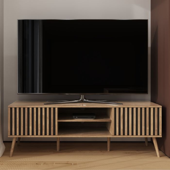 The ROANELL TV Unit isn’t just for the living room—it’s versatile enough to enhance your bedroom as well. Its elegant oak-effect finish, and distinctive slat-front detailing make it a stylish addition to any space, while the design offers practical storage solutions. The open shelving is perfect for organising media devices or displaying decorative items, and the enclosed compartments keep personal items neatly out of sight. Whether used as a TV stand or a multifunctional storage piece, the unit's strong, stable build and ample storage options make it an ideal choice for various rooms throughout your home. All shelving is non-adjustable.