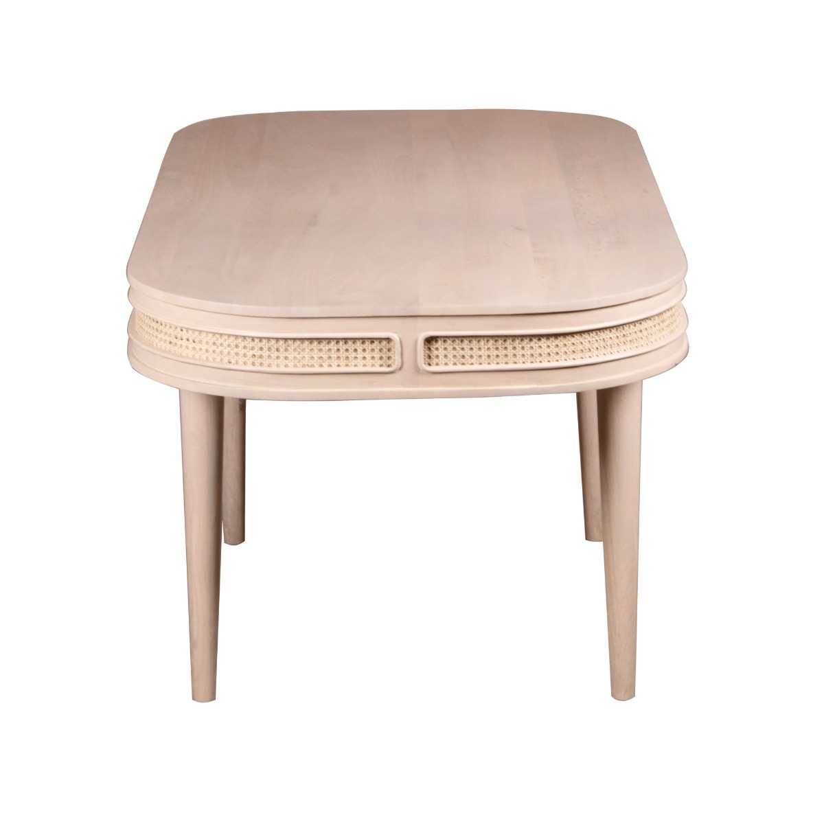 Crafted from the finest materials and designed for timeless appeal, the Roberts Dining Table is the heart of any warm and inviting home. This stunning piece seamlessly blends the rich grain of mango wood with the airy elegance of woven cane, creating a visual harmony that's both sophisticated and inviting. Imagine hosting unforgettable meals and lively conversations around this spacious table. Comfortably accommodates 6-8 guests, making it ideal for family gatherings, intimate dinners, or impromptu game nights.