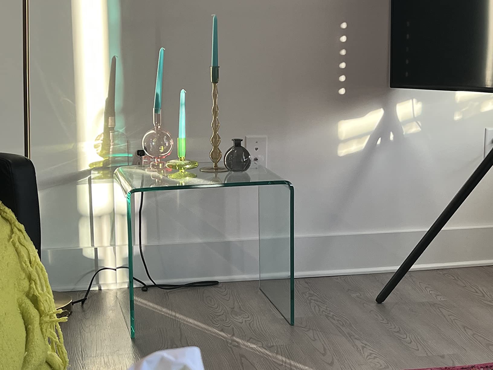 - Crafted from durable tempered clear glass for a sleek and contemporary look.