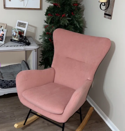 Rocking Chair - Velvet Rocking Chair with Lumbar Pillow and Metal Legs Pink 67cm