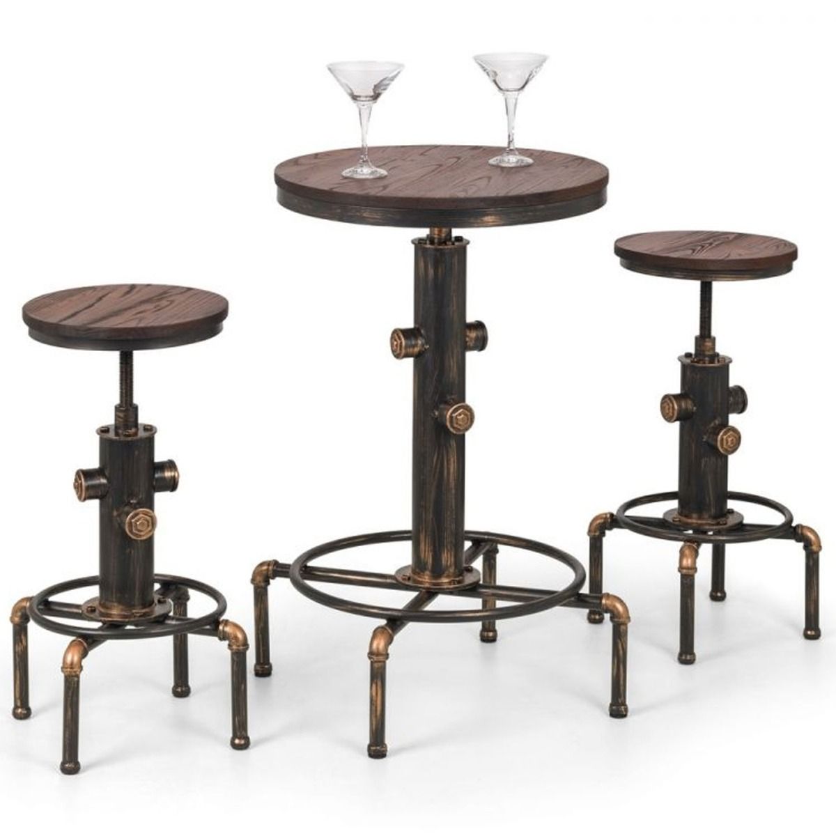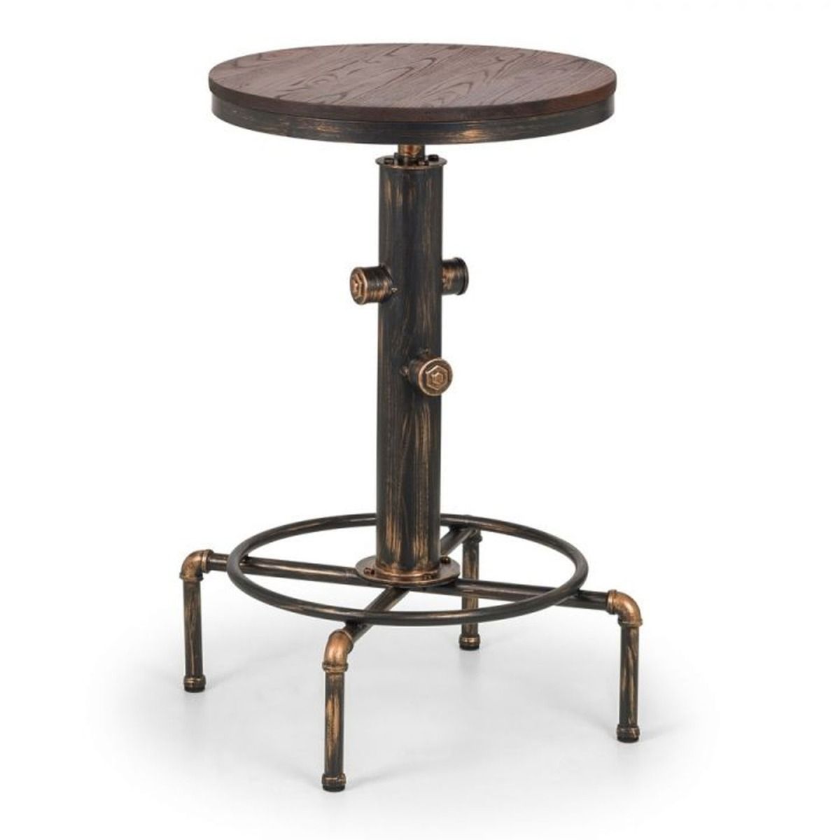Offering a unique vintage style, the Rockport bar table is finished in a brushed copper effect with a rustic elm round seat.