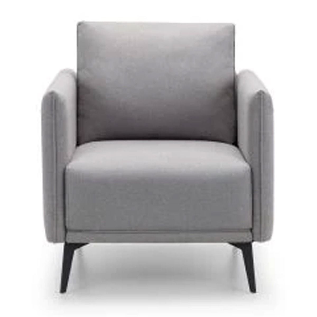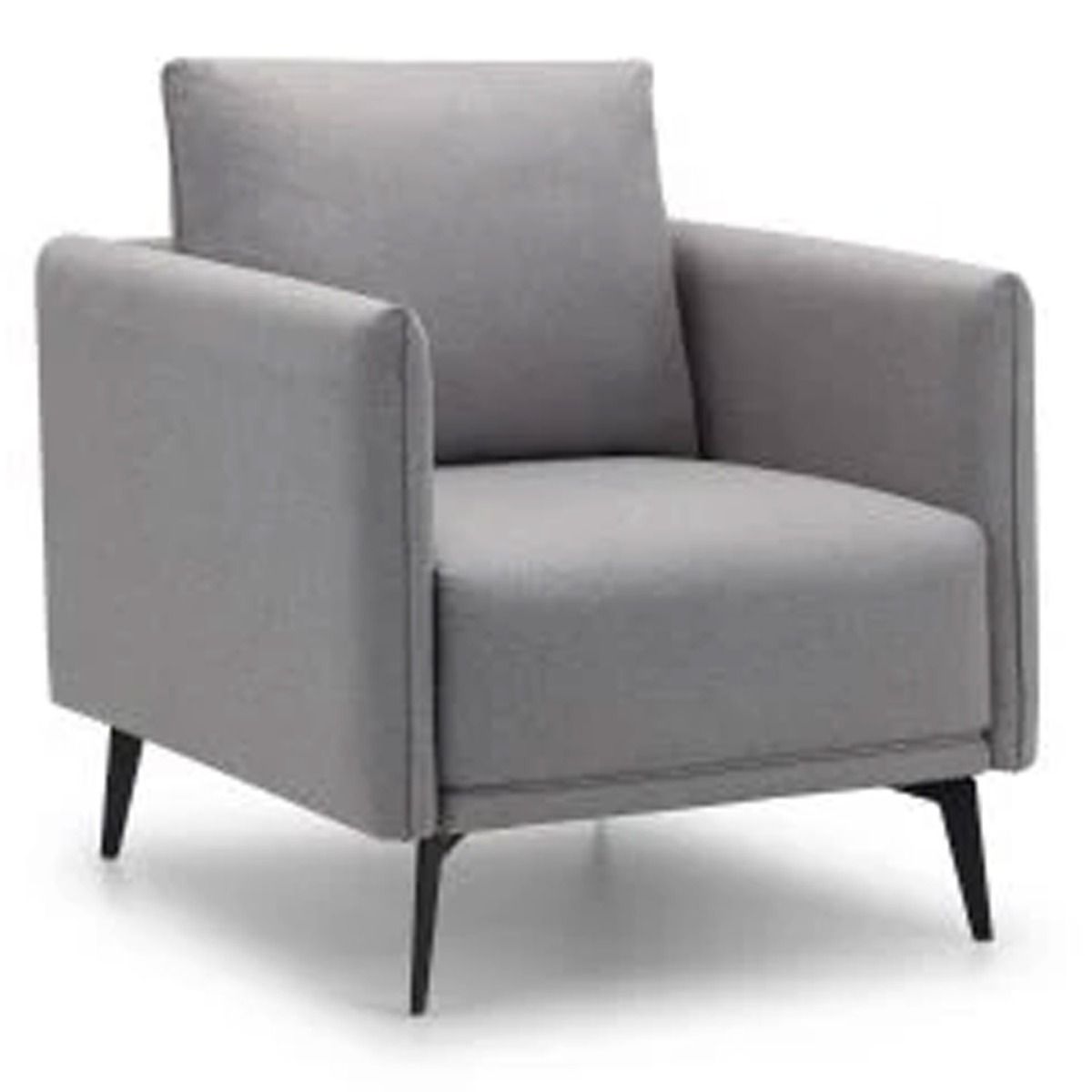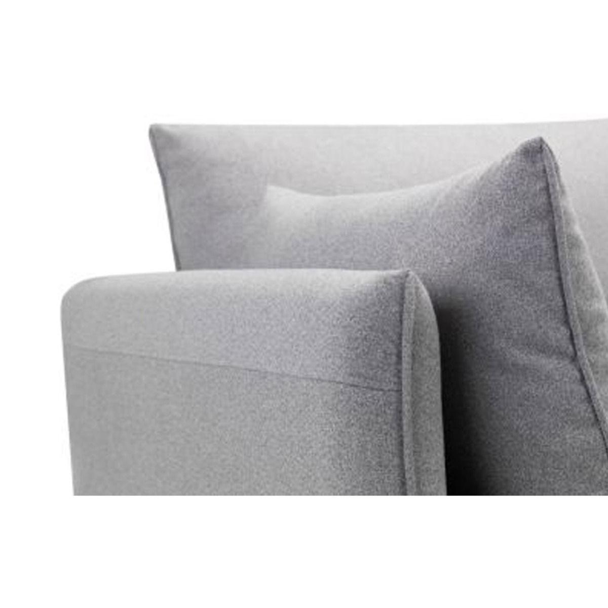 Upholstered in a light grey wool effect fabric, Rohe offers comfort with an ultra modern feel, with removable bolster cushions and sleek black metal legs.