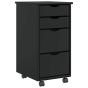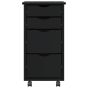 Rolling Cabinet with Drawers MOSS Black Solid Wood Pine