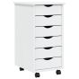 Rolling Cabinet with Drawers MOSS White Solid Wood Pine