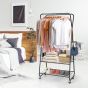 Rolling Clothing Rack on Wheels with Double Hanging Rods and 2 Shelves-Black