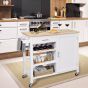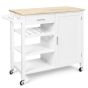 Rolling Kitchen Island Cart with Wine Rack and Adjustable Shelf-White