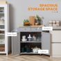 - The double-door cabinet has an adjustable interior shelf where you can keep your favorite pots and pans