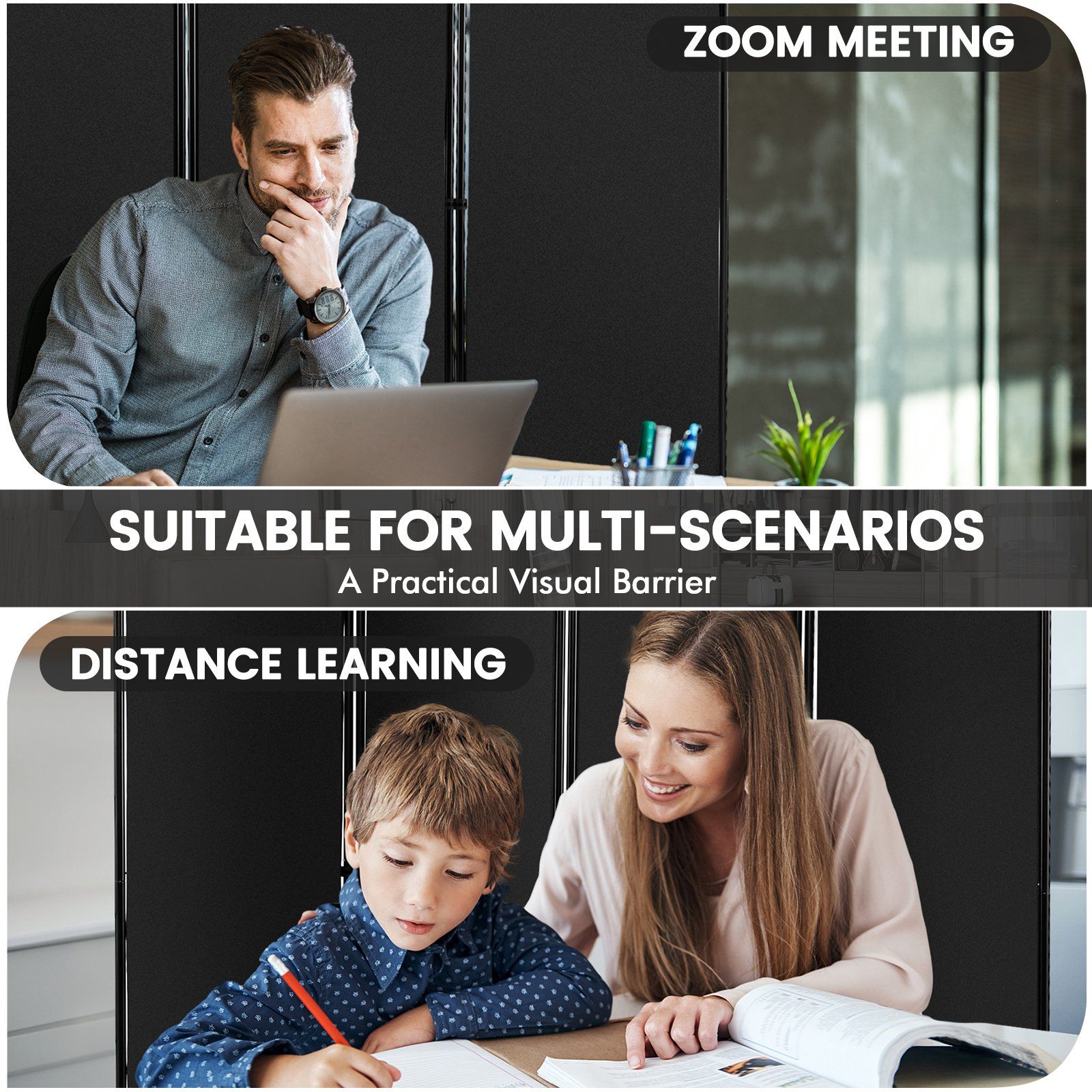Room Divider - 4-Panel Folding Room Divider with Wheels for Living Room Bedroom -Black