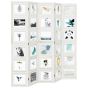 Bring elegance and an eye-catching decorative touch to your space with this charming room divider. Durable and easy to clean: The privacy screen is made from solid paulownia wood, making it easy to clean and durable. The solid paulownia wood frame ensures sturdiness and stability. Solid paulownia wood is a beautiful natural material. Paulownia wood is highly resistant to bugs and rotting.Flexible and easy to fold: Each partition is connected by 3 metal hinges and the upper and lower panels are connected by hidden 2-in-1 hinges. So the room divider panel can be easily folded to some extent according to your needs to save space.Attractive design: Each photo frame can be rotated vertically, allowing you to arrange your favourite photos in any position, becoming the highlight of the room.Multipurpose: The room partition is great for creating private space in your bedroom, living room, office and other interiors. You can also place it in front of a window to block intense sunlight. Warning:Only for indoor use.