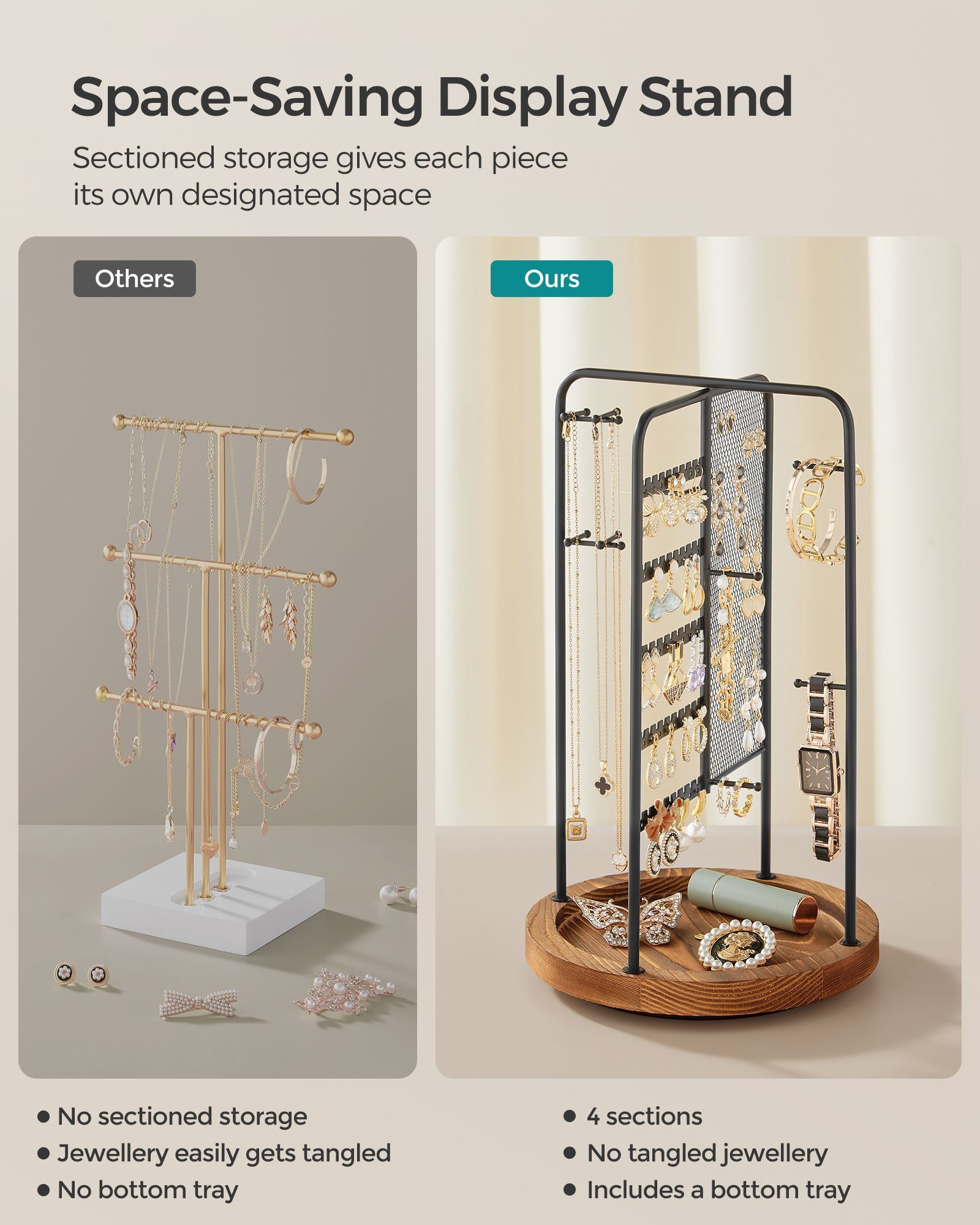 Rotating Jewellery Stand with Bottom Tray Ink Black